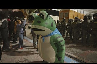 ICE attempted to viciously attack the Portland Frog, but the frog is stronger