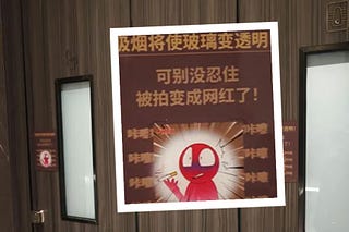 The doors on gentlemens’ bathroom stalls at the Shuibei mall in Shenzhen, China, have smoked glass windows for privacy.