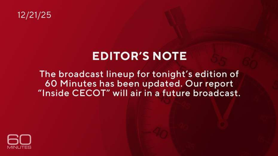 “The broadcast lineup for tonight’s edition of 60 Minutes has been updated,” said the posting. “Our broacast Inside Cecot will air in a future broadcast.”