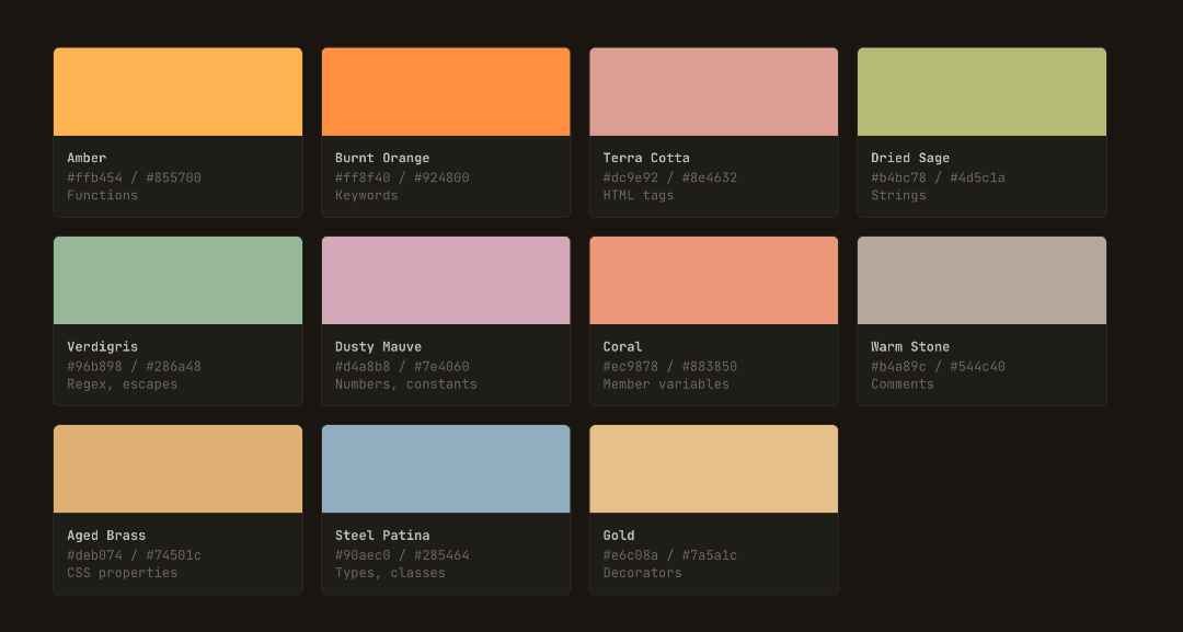 Warm Burnout is a theme for those who are burned out, but need to meet their deadlines. Every color is chosen to please the eyes, calm the mind, and avoid the brain-poking bright blues alleged to interfere with sleep cycles. It’s all very brown: like a tasty chocolate or vanilla cookie, depending on whether you’re using the light or dark variant.