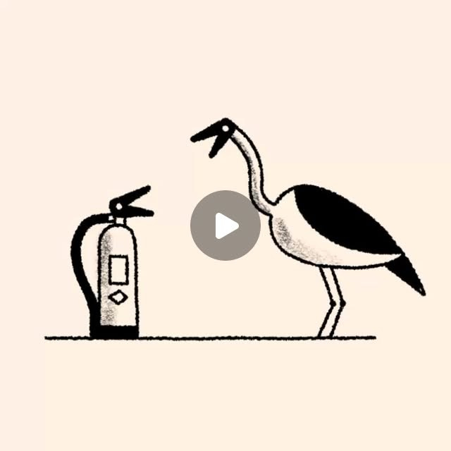 This looping animation by Robert Samuel Hanson is only a few seconds long. A goose tries to interact with a fire extinguisher. The goose and the extinguisher share the same beak (or handle), depending on how you look at it.
