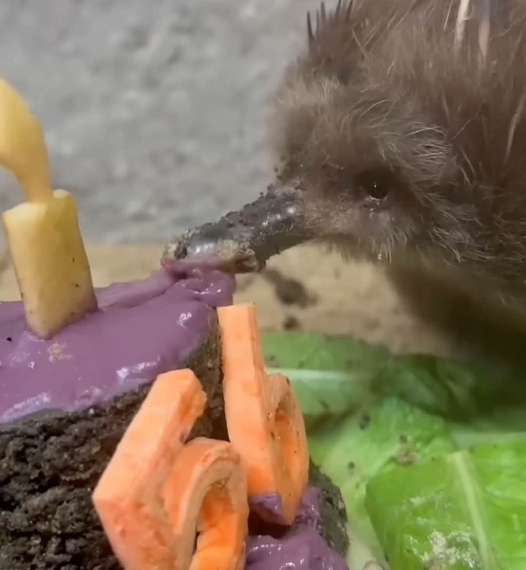 A Tasmanian short-beaked echidna named Adelaide recently turned 56, and the video footage from her birthday party is bringing me joy! She was presented with a beautiful cake that *looked* to be chocolate with purple frosting—but it was really made out of some of her favorite foods, meal worms and chicken puree dyed with animal-safe food coloring!…