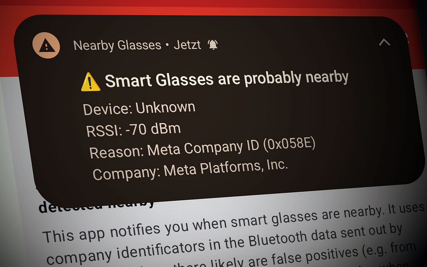 Android app detects nearby smart glasses