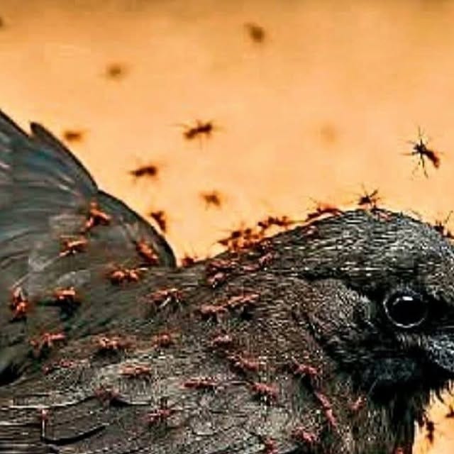 The birds allow ants to crawl all over them for health purposes. The ants …