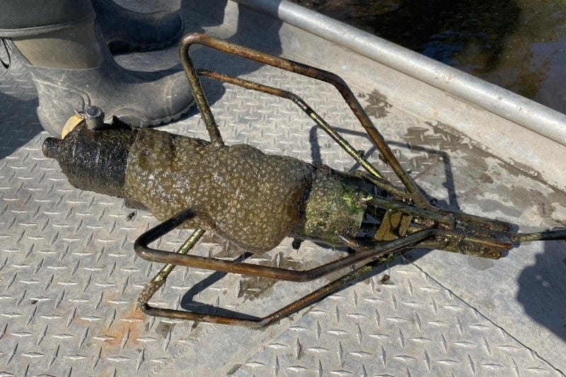 The US Fish and Wildlife Service's Midwest Fisheries Center in Onalaska, WI uses underwater acoustic telemetry receivers to track wildlife. Recently, they hauled one of the gadgets to the surface only to find it engulfed by a colony of strange creatures.