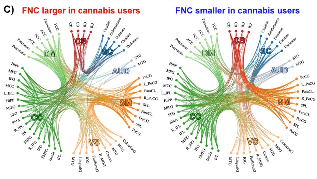 Cannabis users’ brains look younger than their age would predict, according to a brain imaging study of more than 25,000 UK Biobank participants aged 44 to 81. The connectivity patterns associated with cannabis use…