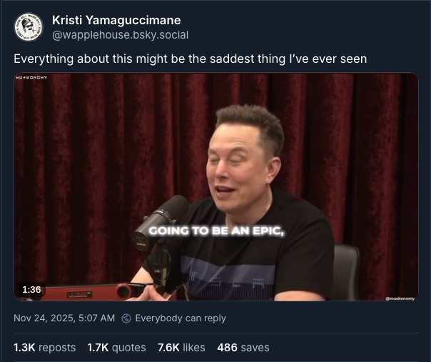 This is pathetic. Thus far, Elon has demanded that his AI worship him (it doesn’t) and has used it to create photo-realistic images of someone loving him. Now, add in turbo-charging his already boorish behavior. Remember, this is the guy who’ll give you a horse if you let him bang you.