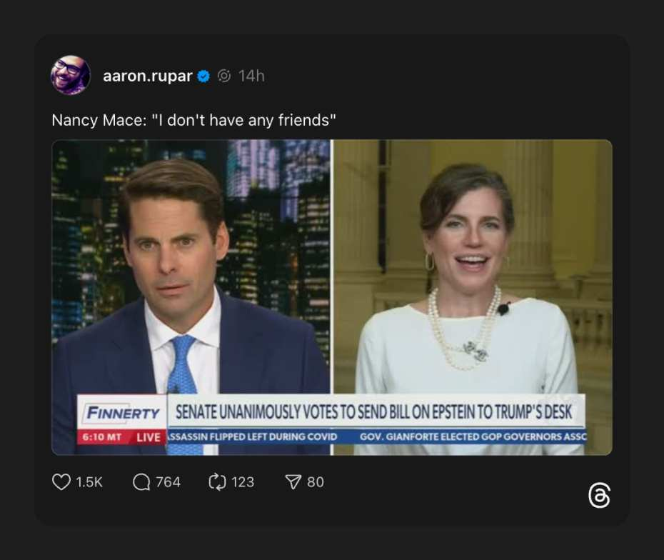 I have a vivid memory of listening to the tail end of an interview where Nancy Mace went full Karen on Ayesha Rascoe, who may be the nicest person on NPR. I’m seriously concerned that something may be fully broken in her.