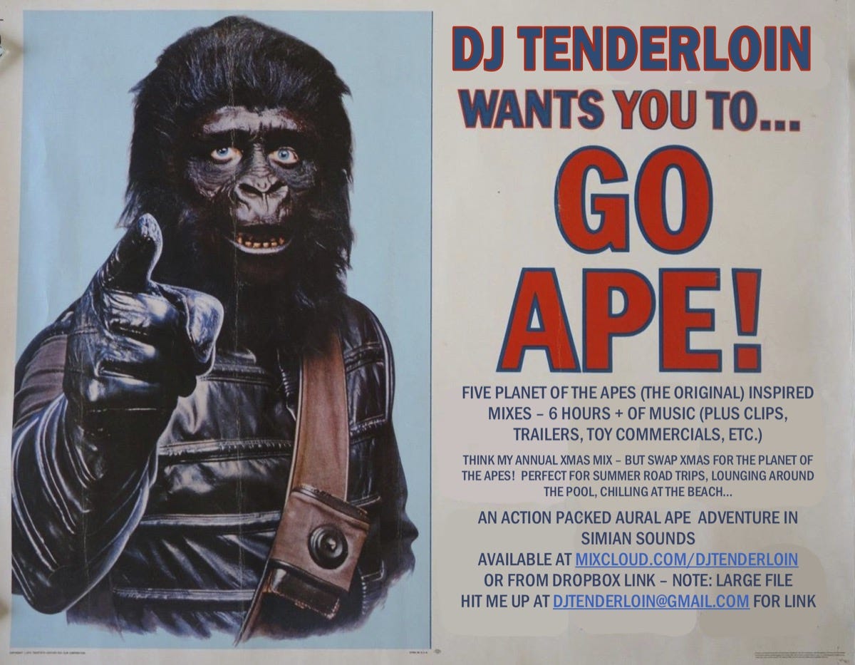 DJ Tenderloin just released five mixtapes themed around the original Planet of the Apes movie. The tapes include Planet of the Apes movie clips, dialogue, and vintage content like trailers and toy commercials.