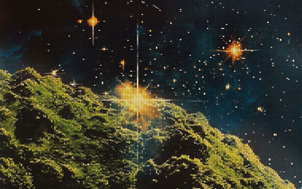 The comet loomed in her canopy. A vantablack mass hiding the stars. No glint on the ice, no coma, just darkness. They'd called it 1I/2077 then the Very Low Albedo Object then Ymwelydd Tywyll. It was silent but Mei's spiraling ship was not: the debris, the power failure, the comet itself. Caution. Mass Intercept…