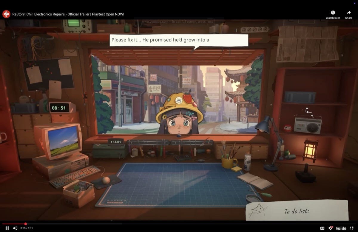 I thought the trend had reached its peak with Vacation Cafe Simulator, which was such a specific pitch that it seemed impossible to zoom in any further. The newly-announced ReStory has it beaten handily. Store management simulators are standard fare, but ReStory is an electronics repair store simulator set in mid-2000s Japan where you fix nostalgic off-brand gadgets and give customers sage advice.