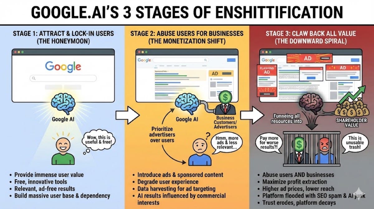 Google.ai predicts its own enshittification timeline
