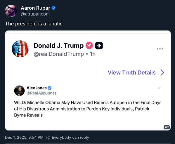 When it comes to his autopen distress, Trump doesn’t just bend reality, he freebases it. Any excuse to claim something was done with the very standard tool gets top billing in his world, where everything is an imagined slight against his rule. Mr. MRI is off on a tear, sharing garbage on social media like he’s running out of time, which hopefully he is.