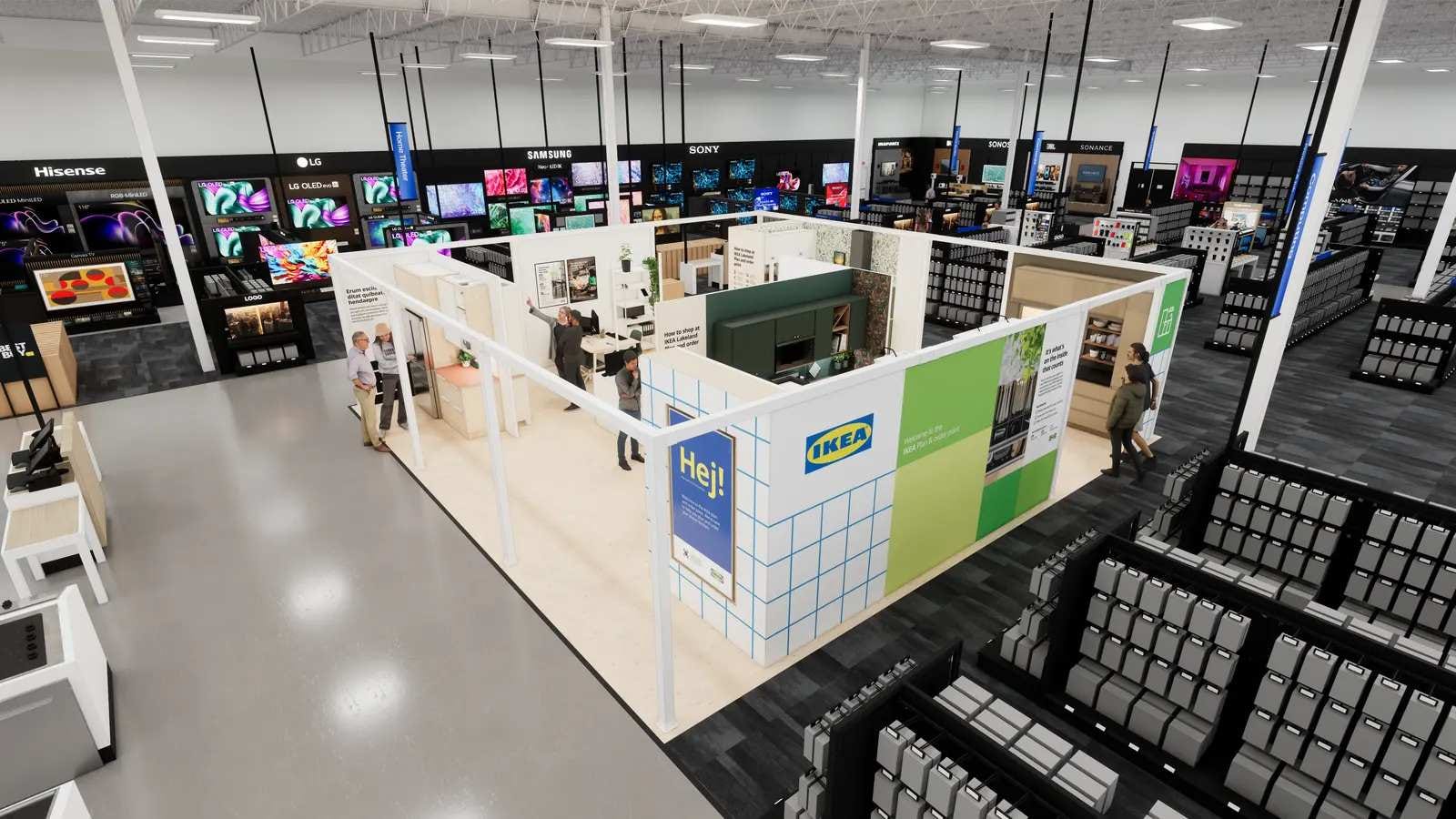 Best Buy has its Apple islands, and soon it will have Ikea forts in its big-box stores. The miniature Ikeas will pitch the Swedish giant's home appliances and kitchen design services.