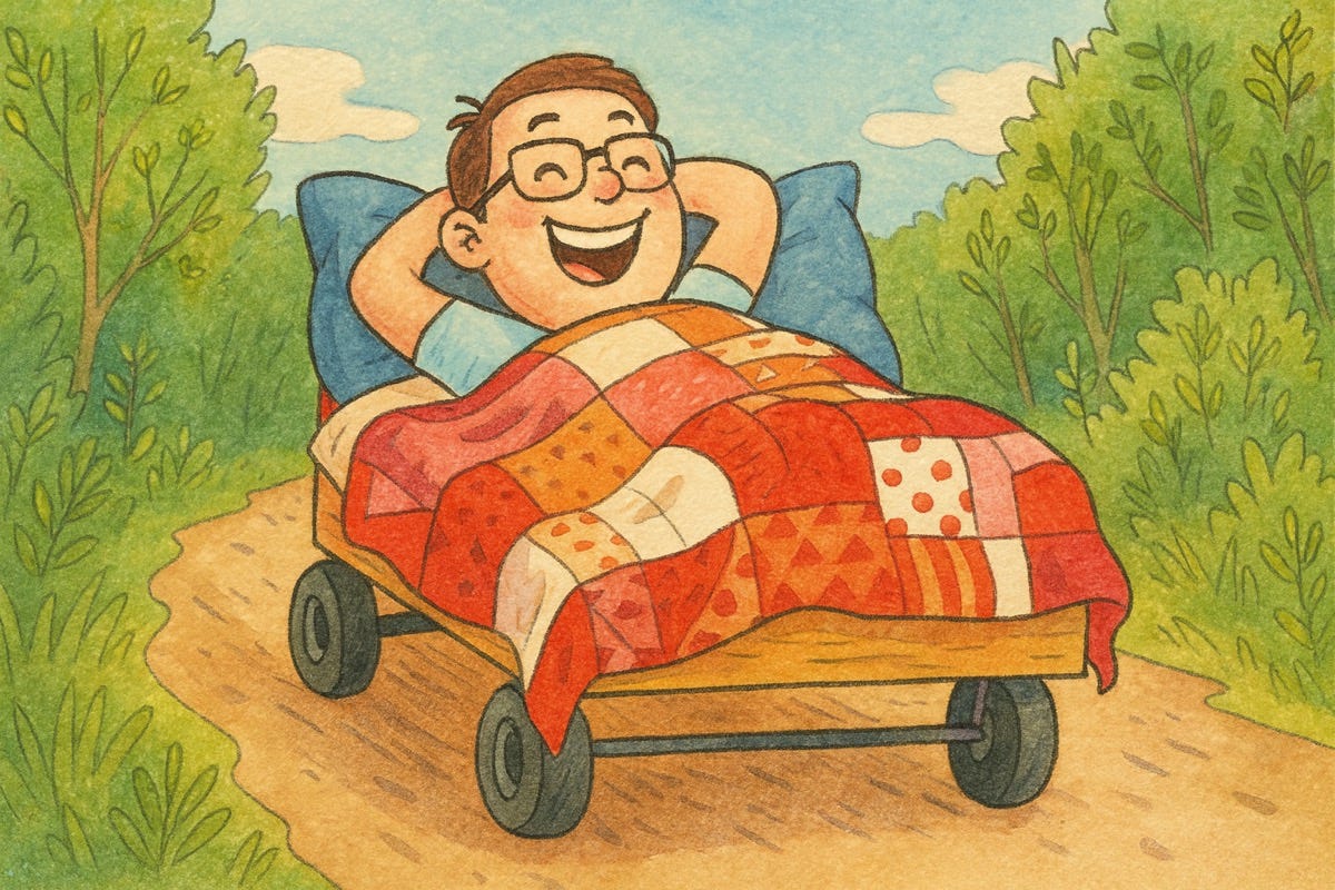 This 39-year-old man in southwestern China's Yunnan province built a motorized bed to realize his childhood dream of going to school while staying cozy in his bed. This bed does a lot more than just roll around while you lay in it, though.
