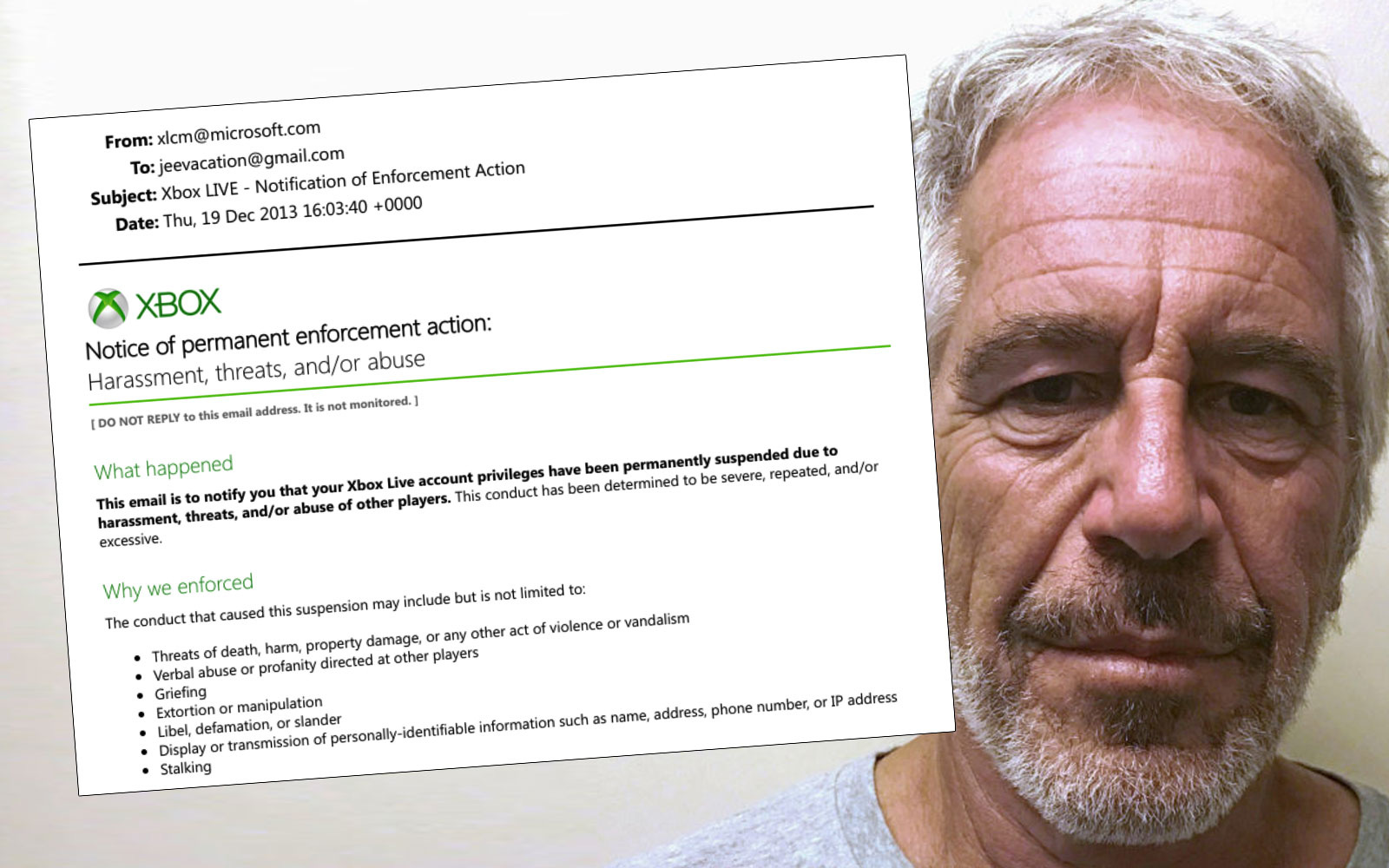 Jeffrey Epstein was banned by Xbox Live