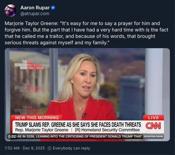 Apparently, calling her a “traitor” was a bridge too far. Not for the movement, mind you, but for Greene personally. Like her recent realization that health care costs matter now that her own kids need insurance, Greene’s empathy seems to click into gear only when Marjorie feels the consequences. Until then? Leopards for everyone else.