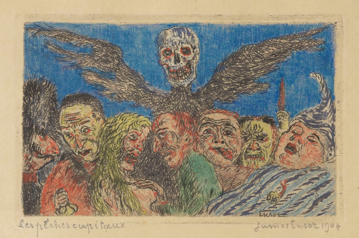 James Ensor (1860–1949) spent nearly his entire life in Ostend, Belgium, living above the family shop that sold carnival masks. In the 1880s he turned his back on the realist style that had first brought him recognition and began conjuring a far stranger world: grotesque Christian icons, …