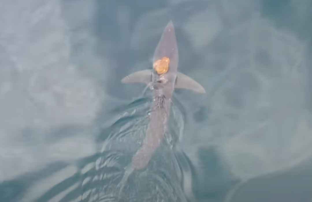 Researchers from the University of Auckland in New Zealand spotted something unusual in the waters of the Hauraki Gulf, off the island of Kawau. It was a short-fin mako shark, but something was on its head. They worried the shark might be injured, so they used a drone and an underwater camera to get a c…
