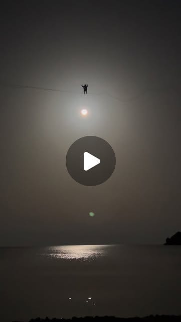 A slackliner set up a line above a lake blanketed in low fog, and a photographer positioned the camera so the moon sat right at the horizon behind them. The result: it looks exactly like a person bouncing on the moon.