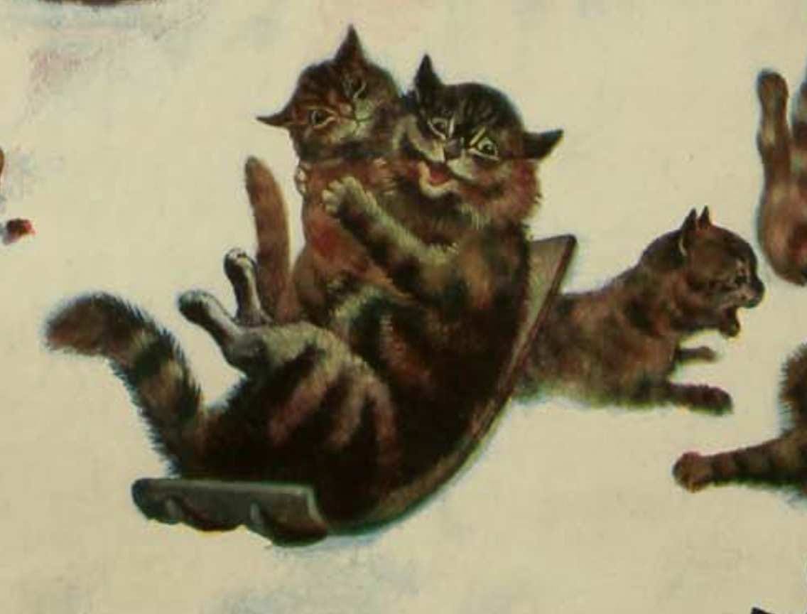 This delightfully chaotic Louis Wain painting shows cats sledding downhill with pure joy and terror