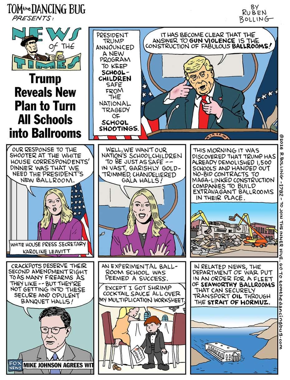 Tom the Dancing Bug: News of the Times – Trump Reveals New Plan to Turn All Schools into Ballrooms