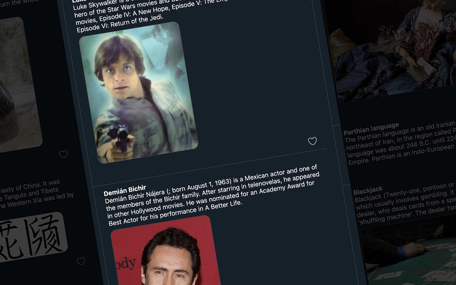 Xikipedia is an experiment in user experience: Wikipedia content formatted into an infinite-scroll mobile-friendly feed. So you can doomscroll it. It was created by lyra rebane and the source code is available on GitHub.