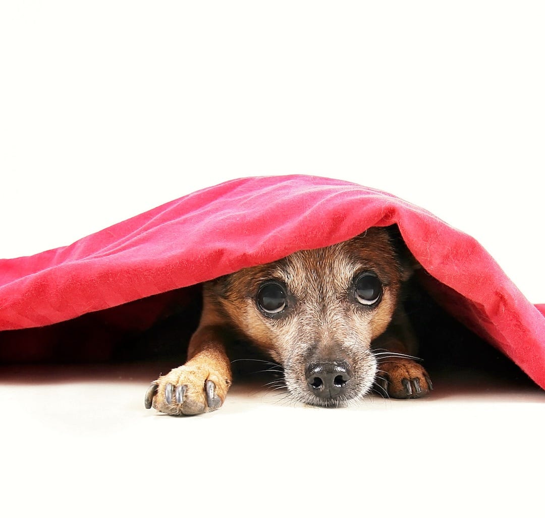 "The dog I got to help with my anxiety," says the caption on her amusing video, which shows a wide-eyed, small trembling pooch loo…